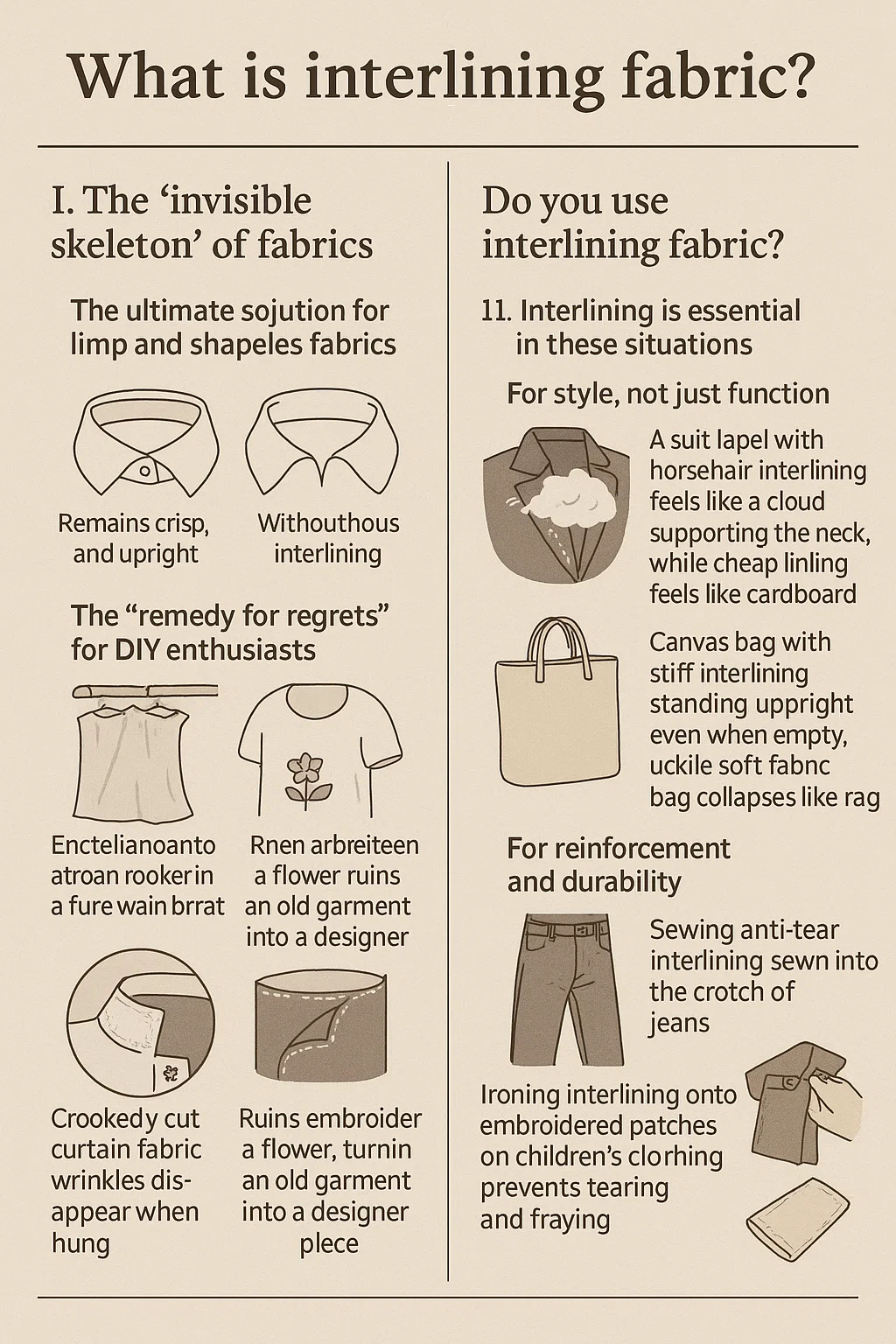 Přidating interlining to a chiffon dress makes it feel like umbrella fabric, preventing it from flowing in the wind.