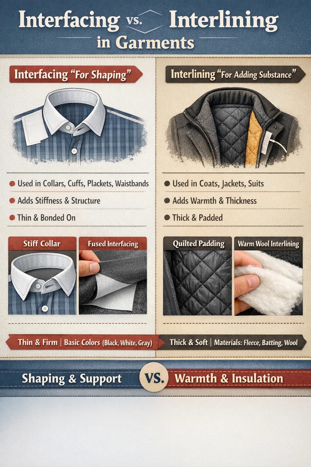 Při výrobě oděvů a zpracování tkanin, vložka a rozhraní jsou jako "neviditelná kostra" a "izolační vrstva" oblečení. Obojí je sice ukryto uvnitř oděvu, ale slouží úplně jiným účelům.